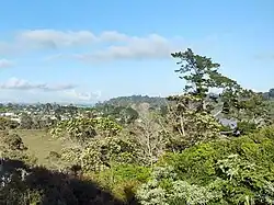 The area is primarily formed from Early Miocene Waitemata Group sandstone and mudstone.[15] Prior to human settlement, the area was a kauri and mixed podocarp forest,[16] which by the 19th century developed into a mānuka-dominated scrubland.[16]