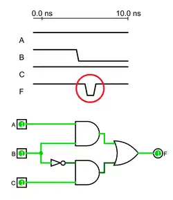 A glitch (circled in red) occurring during circuit operation.