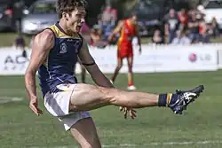 - Around-the-corner (kick): a kicking style that has gained increasing popularity since the 2000s where the player kicks the ball across their body in a hooking style rather than using a traditional drop punt, in particular when taking a set shot on goal.