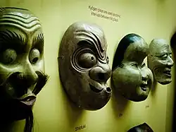 - A category of Noh mask depicting powerful supernatural beings, characterized by its fierce expression with bared teeth and wrinkled brow.
