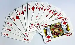 The following is a glossary of terms used in card games. Besides the terms listed here, there are thousands of common and uncommon slang terms. Terms in this glossary should not be game-specific (e.g. specific to bridge, hearts, poker or rummy), but apply to a wide range of card games played with non-proprietary packs. It should not include terms solely related to casino or banking games. For glossaries that relate primarily to one game or family of similar games, see Game-specific glossaries.