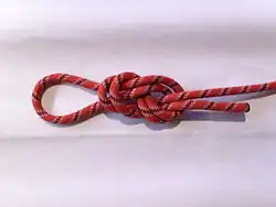 2. A knot used to prevent the end of a rope from running through—and detaching from—a piece of gear.[1][2]