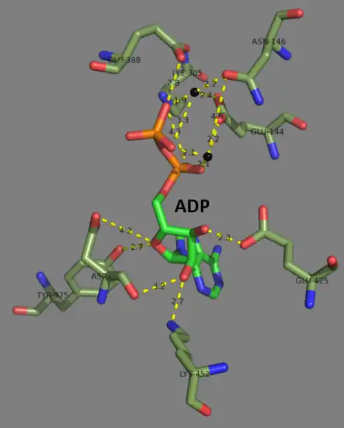 - ^ Hara T, Kato H, Katsube Y, Oda J (Sep 1996). "A pseudo-michaelis quaternary complex in the reverse reaction of a ligase: structure of Escherichia coli B glutathione synthetase complexed with ADP, glutathione, and sulfate at 2.0 A resolution". Biochemistry. 35 (37): 11967–74. doi:10.1021/bi9605245. PMID 8810901.
