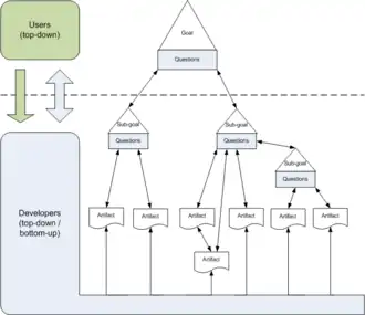 While the top-down orientation supports a horizontal team organization, bottom-up approaches try to provide generalized components or services, leading to a better user satisfaction.[4] The collaborative identification of goals introduced by GDP allows combining top-down with bottom-up aspects (“top-down thinking and bottom-up acting[1]) to support artifacts consistency and allowing vertical team organization.