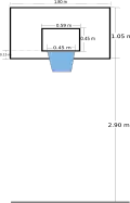 | Canoe polo | ICF | Netted rectangular cuboid | 1.5 meters | 1 meter (above 2 meters from water) | 0.5 meters | |