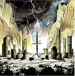 Gods of the Earth is the second studio album by American doom metal band The Sword, released in Europe on March 31, 2008, and in the United States on April 1.[3] It gave the band their first experience of commercial success when it peaked at #102 on the Billboard 200 chart.[4] The single released from the album was "Fire Lances of the Ancient Hyperzephyrians",[5] which did not chart. Gods of the Earth was later re-released as part of a two-disc box set with Age of Winters on November 25, 2008.[3][6] Their track "The Black River" was featured in the game Guitar Hero: Metallica, released in March 2009. "Maiden, Mother & Crone" is featured in Guitar Hero 5, released in September 2009.