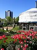Beginning in 2009, the former goods station was renovated, the two warehouses was rebuilt and refurnished, and a new building was constructed in between. The new and old buildings now house the cultural centre of Godsbanen, opening on 30 March 2012,[3] and organize a host of cultural arrangements and facilitates everyday cultural engagement for the citizens of Aarhus and surrounding suburbs. This includes theatre, dancing, music, film, artwork, printing, workshops, festivals and business networking.[4] Since the opening of the centre, there has been a restaurant and café, at the center of the new building, but it has changed owners and concept several times. The former restaurant of Thorvalds (named after the original goods station's first manager Thorvald Engqvist) took over from Aarhus Folkekøkken (Aarhus Civic Kitchen) and is now replaced by Spiselauget. With slightly varying concepts, the restaurants has always focussed on sustainability and organic, seasonal and local produce.[5][6][7][8]