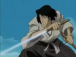 Being a master of several classic Japanese martial arts, Goemon excels at Kenjutsu and Battōjutsu. Using his trademark Zantetsuken sword (carried in an unadorned shirasaya without a hand guard) he has the ability to cut through virtually any substance, even flying bullets, steel girders, automobiles, and multi-storied buildings. His training includes Jujutsu, Aikido, and Karate, enabling barehanded vanquishing of several attackers at once with minimal effort. In spite of his invincible weapon and his martial arts expertise, Goemon prefers to incapacitate rather than kill opponents, usually by destroying their weapons and clothes with lightning fast sweeps of his sword. Since katanas traditionally must cut flesh before being returned to the scabbard, Goemon reacts to his non-lethal use of Zantetsuken by exclaiming, "I have cut yet another worthless object." (またつまらぬ物を斬ってしまった, Mata tsumaranu mono o kitte shimatta)