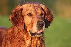 The Golden Retriever is still used as a gundog by sportsmen, both as a hunting companion in the field and for competing in field trials.[4][9][13] It is used more for retrieval of land-based gamebirds such as grouse and partridge than for wildfowl hunting.[9] Those used as gundogs are usually from working lines specifically bred for field use; dogs from pet or show lines are rarely suitable.[4][9][13] A Golden Retriever with a traditional dense double coat is well suited to working in cold and wet conditions, as the coat provides water resistance and insulation.[9][13] Compared to other retriever breeds, the Golden Retriever is not a strong swimmer; its long coat causes it to sit low in the water when swimming.[9]