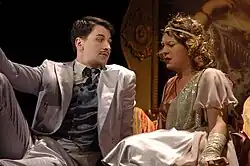 For his performance in Okamenjeni princ in the Duško Radović theatre, he received the Miloš Žutić Award. As Prince Hamlet in Hamlet, he won the Ardalion and the Serbian Oscar of Popularity in 2011.[2] He was awarded the Serbian Oscar of Popularity again for his Romeo Montague interpretation at the Novi Sad Serbian National Theatre. The Noises Off rendition gained him a Zoran Radmilović Award and Ljubinka Bobić Award in 2014. He has taken part in over sixty international film and theatre festivals, and has completed over one hundred performances in the Atelje 212 theatre.[2] He has performed in Moscow, London, Verona, Rome, Split, Budapest, Dresden, Vienna and Zagreb.[4] In 2018, he starred as Friedrich Nietzsche in his directorial debut Kad je Niče zaplakao at Atelje 212.[5]