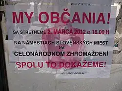 - ^ "'Gorilla Protest' takes place in Bratislava". The Slovak Spectator. 28 January 2012. Retrieved 26 May 2012.