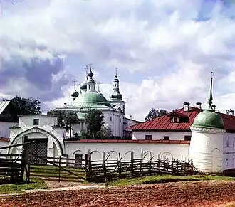 The Goritsy Monastery of Resurrection (Russian: Воскресенский Горицкий монастырь) is a Russian Orthodox convent (female monastery) in the village of Goritsy, Kirillovsky District, Vologda oblast, Russia. The convent is 15 kilometres (9.3 mi) north of the town of Kirillov, Kirillovsky District, which was the site of one of the historically most important (as well as wealthiest) male monasteries in Russia, and to which Tsar Ivan the Terrible, discussed below, had planned to retire.[1] Since the 1970s, the Kirillo-Belozerksy museum zapovednik of History, Art, and Architecture has operated parts of the Goritsky complex. Parts of Goritsky convent were reopened for religious purposes two decades later, and as of 2011 Goritsky was one of the four acting monasteries in Vologda Oblast, and the only one for religious women.
