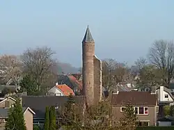 From the 13th century there is talk of the castle, its builders and residents, the Van Haeften family. In the disaster year 1672, the castle was destroyed by the French troops of King Louis XIV, leaving only one corner tower. The tower is approximately 19 meters high and 3.5 meters in diameter. Halfway through, traces of tilting are visible in the wall work. The corridor was originally at this height, the wall below it has a thickness of 1.10 meters, while above it the wall is only 25 centimeters. The wall was probably raised in the 16th century. [1] The Dutry van Haeften family, relatives but no direct descendants of the builders, retained the remaining tower until 1975. The Friends of Geldersche Kasteelen Foundation acquired the tower and took care of it.[2]