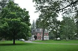 The site that is now the Togus VA facility is the first veterans facility established by the United States. It was established by an act of Congress in 1866, to provide a space for "any worthy soldier" who was "suffering such a degree of disability" so as to need such a facility.[3] The property acquired by the government was a summer resort, capitalizing on local mineral springs, that had gone bankrupt in the war. This facility opened in 1866, and its main buildings were destroyed or damaged by fire in 1868.[4] The government embarked on a major building campaign in 1868–69, of which the residence of the facility's governor (now director) is now the only surviving building.[3] The buildings of this building campaign were designed by the Boston architect Benjamin F. Dwight, and the contractor was Nathaniel Head of Hooksett, New Hampshire.[5]