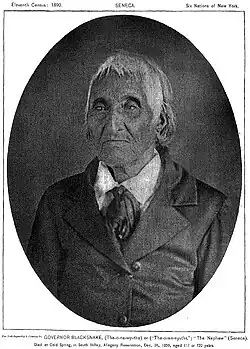 - ^ "Blacksnake. Tah-won-ne-ahs. Wolf Clan. (c1749-1859)". RMSC - Louis Henry Morgan Website - Johnson Family Tree. Archived from the original on March 2, 2007. Retrieved October 2, 2012.