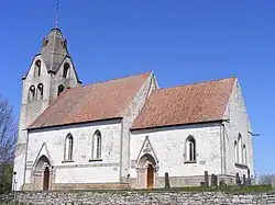 The church is large in comparison with other country churches on Gotland, and built of local sandstone.[3] The nave is divided in three sections by sturdy columns. The choir lacks an apse and instead ends with three slender Gothic windows, a design typical for medieval churches on Gotland. The tower is Romanesque but the spire dates from the 18th century.[1]