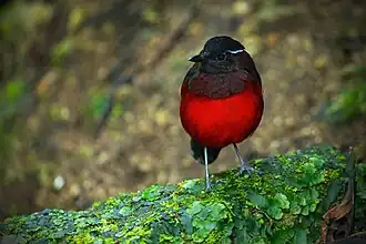 The graceful pitta is a native of the Indonesian Sumatran highlands,[8] which consist of thick tropical forests with various species of plants, animals, and insects. It inhabits dense, moist woods with a thick understory of plants, but its habitat has been decreasing rapidly due to deforestation owing to the demand for palm oil, which Indonesia is the largest producer of.[9]