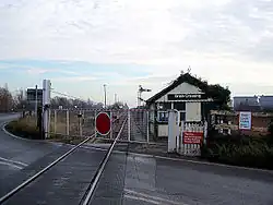 Grain Crossing Halt (TQ 863 753 51°26′45″N 0°40′55″E / 51.445943°N 0.681966°E) was a halt on the Hundred of Hoo Railway between Stoke Junction Halt and Port Victoria station in the UK. It was opened on 1 July 1906 and closed to passengers on 11 June 1951. A bus service operated until 3 September 1951, when it was replaced by Grain station. Although officially named Grain Crossing Halt the station nameboard read Grain Halt[2][3]