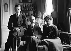 At the fall of the Russian monarchy in March 1917, Grand Duke Paul, his wife, and their children remained united living at their luxurious estate in Tsarkoe Selo amid the upheaval.[54] As Tsar Nicholas II and his family were sent to internal exile in Siberia, the Provisional Government, led by Alexander Kerensky, placed Paul under house arrest on 9 September [O.S. 27 August].[55] His telephone line was cut and a squad of soldiers guarded all the exits to his home.[56] Through the intervention of his daughter, Grand Duchess Maria Pavlovna of Russia, whose second wedding he was not able to attend, the guards in charge of overseeing his house were removed.[54][55]