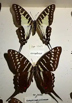 Graphium colonna is a member of the antheus - clade (colonna, Graphium antheus, Graphium evombar , Graphium kirbyi, Graphium junodi, Graphium polistratus, Graphium illyris, Graphium gudenusi).