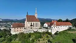 Since 2015 Gratwein-Straßengel (German: [ɡʁatˈvaɪn ʃ͡tʁasˈɛŋgl̩]) is a market town in the Graz-Umgebung District of Styria, Austria. The town took effect as part of the Styria municipal structural reform,[3] from the end of 2014 with the merging of the former municipalities Gratwein, Judendorf-Straßengel, Eisbach and Gschnaidt. The merger made the market town population to be the 6th-largest in Styria.[4]