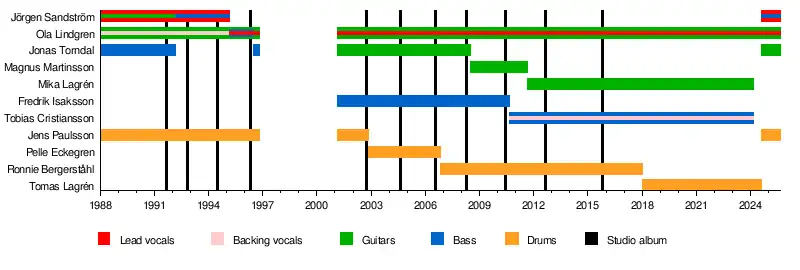 - Ola Lindgren – guitar (1988–1996, 2001–present), lead vocals (1995–1996, 2001–present), bass (1995–1996), backing vocals (1988–1995, 2024–present)