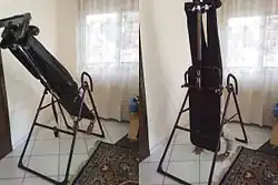 ![]() Foldable inversion table, extended and set up for use. | |
