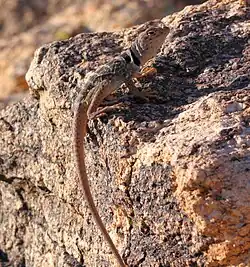 - ^ a b Stebbins RC (2003). A Field Guide to Western Reptiles and Amphibians, Third Edition. The Peterson Field Guide Series. Boston and New York: Houghton Mifflin. ISBN 978-0-395-98272-3. xiii + 533 pp., 56 plates, 39 figures, 204 maps. (Crotaphytus bicinctores, pp. 272-273 + Plate 27 + Map 85).