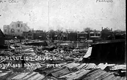 ![]() Mill Street after the flood, with the tower of Engine House No. 6 in the background | |