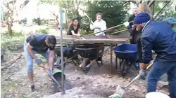 Green Oasis Community Garden was founded in 1981.[2] With the neighborhood experiencing crime and decay in the preceding decades, the garden opened, alongside Gilbert’s Sculpture Garden, aiming to provide a safe, green space for all people, especially children.[2] In addition, the garden created space for the community, offering a space to perform theater, poetry, and enjoy nature.[2] Green Oasis Community Garden, founded by Norman Valee and Reinaldo Aranas, was created from five abandoned lots located on East 8th St between Avenues C & D.[3][4] With the help of the community, the lots were cleared of rubble, dumped cars, and garbage to prepare for the garden.[3]