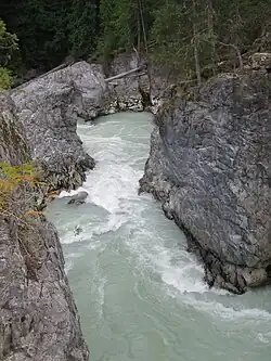 The Green River is a tributary of the Lillooet River in southwestern British Columbia, Canada. Approximately 25 kilometres in length, it begins at the outflow of Green Lake at the north of Whistler, and flows northeast to join the Lillooet River[1] about two kilometres above where the river flows into Lillooet Lake. Its main tributaries are the Soo River and the river-like Rutherford Creek, which is the location of one of only two artificial whitewater kayaking courses in Canada. Just below Rutherford Creek is Nairn Falls.