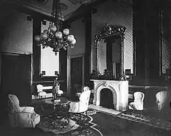 ![]() The Green Room, in an undated photo, likely created between 1860 and 1880, and then used as a Presidential study. | |