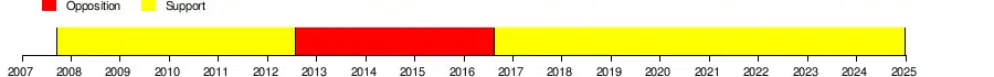 In early February 2014 Zeleni had decided to join Boris Tadić's New Democratic Party under formation, so henceforth they will be considered a single organisation under the name "New Democratic Party-Greens".[2] Subsequently, Zeleni passed a new Statute on 10 February 2014 and officially changed its name to New Democratic Party–Greens'. The New Democratic Party seceded from this union after the election, and on 14 June 2014 the name of the party was changed back to "Greens of Serbia".[3][4]