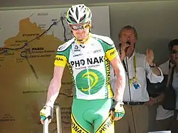 In 2001 LeMond was one of the first professional cyclists of note, and the only former Tour champion, to openly express doubts over the legitimacy of Lance Armstrong's three-consecutive Tour successes.[5][6][7] He consistently questioned the relationship between riders and sports doctors like Italian Michele Ferrari. In 2006 LeMond noted that the extent of doping in the sport could not occur without complicity from the body that regulates international professional cycling, and he accused the Union Cycliste Internationale of serious doping-related corruption.[8][9] In an open letter in December 2012 he asserted that UCI's Pat McQuaid and Hein Verbruggen were central to the problem in professional cycling.[10] LeMond claimed professional cyclists are treated as "lab rats," while the doping facilitators escape harm or responsibility. He told an audience at Coventry University, "The doctors, the management, the officials, they're the ones that have corrupted riders. The riders are the only ones that pay the price".[8] LeMond's statements have brought him into conflict with some of the sport's elite, including the UCI's McQuaid and Verbruggen, the Trek Bicycle Corporation,[11] and riders Lance Armstrong,[12] Floyd Landis, and Alberto Contador. In the interests of reforming the sport, LeMond offered to serve as president of the UCI, taking over the position of former president Pat McQuaid.[13][14]