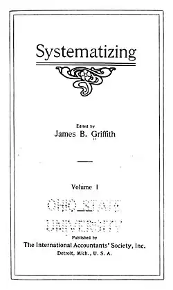 - Griffith, James Bray (ed.). Systematizing. International Accountants' Society, inc. Detroit; The Book Keeper Press, 1905.