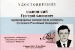 The Grigory Yavlinsky presidential campaign, 2000 was Grigory Yavlinsky's campaign in the 2000 Russian presidential election. Yavlinsky ran as the nominee of Yabloko. This was Yavlinsky's second presidential bid, as he had been a candidate in the previous presidential election.