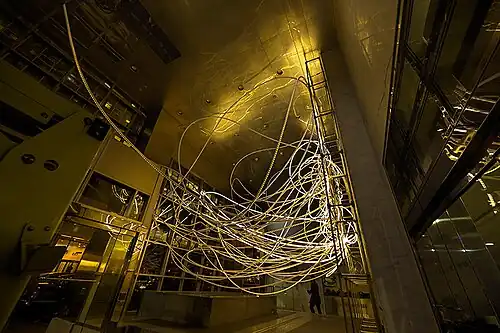 The Mirror Connection, a large-scale light installation, was exhibited at the Museum of the Central Academy of Fine Arts (CAFAM) in Beijing, China in 2013. The museum, designed by renowned Japanese architect Arata Isozaki, provided a distinctive architectural context for the installation.[25] The installation consists of illuminated, tentacle-like forms interconnected by visible wiring and programmed with dynamic and unpredictable light sequences.[25]