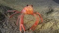 Grimothea planipes is a bright red animal, up to 13 centimetres (5.1 in) long.[1] It resembles a true lobster, but has a shorter abdomen.[2]
