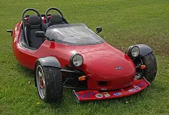 Grinnall Cars was founded by Mark Grinnall, originally responsible for modifying the Triumph TR7 and later creating a 350 unit run of the Grinnall TR8 based on Triumph TR8.[1][2] In 1991, Grinnall formally moved into manufacturing three wheeled cars and motorcycles - known as Trikes. The first model, launched in 1992, was the Scorpion III an open two seat, three wheeled sports car, using BMW K1100 motorcycle engines that could reach over 130 mph.[3][4] One famous owner and supporter of the Scorpion III was Roger Cook, of The Cook Report.[5]