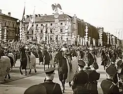 - 1937: First editions from July 18 to October 31. Opening within the framework of a Day of German Art with a festive program from July 16 to 18, including a large procession 2000 Years of German Culture". Simultaneous opening of the new House of German Art. Opening speech by Adolf Hitler.[4]