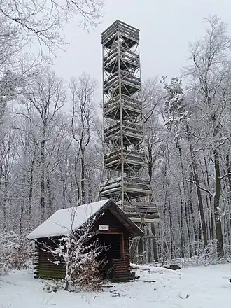 At the summit of the Eyberg is an 18-metre-high, observation tower, of steel lattice construction, built between 1945 and 1949 by the French Army. The tower can only be accessed over unmetalled hiking trails.