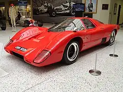 In 1966 and 1967, the Group 4 Sports Cars played a supporting role to the Group 6 prototypes. While prototypes like the 7.0L Ford GT40 Mk II and the Mk IV raced for outright victories, the 4.7L GT40 Mk I entries were competing for Group 4 class wins.[9] Indeed, competitors in the two categories were competing for two different championships. The Group 6 cars for the International Championship for Sports-Prototypes and the Group 4 cars for the International Championship for Sports Cars. In 1968, the rules were changed, so that prototypes were limited to 3.0L, but sports cars of up to 5.0L could still be entered. It was also announced that the minimum production figure for the Group 4 sports cars would be reduced to 25 cars for 1969. With larger engines than the prototypes, the Group 4 cars were now in contention for outright race wins. The Ford GT40 was the winner at Le Mans in both 1968 and 1969. Porsche began work on a production run of 25 cars for the Porsche 917. Ferrari, with some financial help from Fiat, produced the similar Ferrari 512.[10]