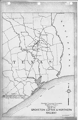 2. ^ a b c d Young, Nancy (January 1, 1995) [1952]. "Groveton, Lufkin and Northern Railway". Handbook of Texas Online. Texas State Historical Association. Retrieved October 13, 2023.