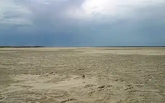 The central focal point of the Grulla National Wildlife Refuge is an ephemeral salt lake or saline playa – a shallow basin that collects runoff from the surrounding drainage area during heavy downpours but then often dries completely due to evaporation. This playa lake has been known by various names. Current USGS topographic maps and most commercially available maps of this region refer to this saline playa simply as "Salt Lake".[2][3] Back in the early 1880s, this playa was part of the DZ Ranch, and those familiar with the ranch often favor the name "DZ Lake". The lake is also frequently called "Arch Lake" after the nearby community of Arch, New Mexico, located around 6 km to the northwest.[4][5]