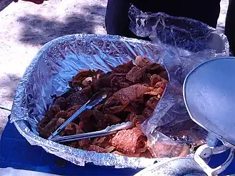 - Chicharrones y carnitas, fried pork skins and fried pork meat chunks, respectively