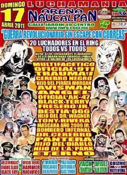 Beginning in 2009, the Mexican wrestling promotion International Wrestling Revolution Group (IWRG, sometimes referred to as Grupo Internacional Revolución in Spanish) held an annual show called Guerra Revolucionaria ("The Revolutionary War"), a reference to the Mexican Revolutionary War (1810-1821). The main event match, the eponymous Guerra Revolucionaria, was a 20-man battle royal in which all 20 wrestlers start out in the ring. Once a wrestler is thrown over the top rope to the floor that wrestler is eliminated from the actual match and instead will act as a "lumberjack" outside the ring, ensuring that none of remaining competitors try to escape the ring. Each "lumberjack" is given a leather strap that they are allowed to use on anyone who leaves the ring. The multi-man match often allows IWRG to intersect various ongoing storylines as another step in the escalating tension. At other times, the match itself was used as a way to start new feuds due to interactions inside or outside the ring. The Guerra Revolucionaria shows, as well as the majority of the IWRG shows in general, are held in "Arena Naucalpan", owned by the promoters of IWRG and their main arena. The 2011 Guerra Revolucionaria show was the third year in a row that IWRG held a show with that name.