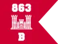 Lettered companies (troops and batteries in the cavalry and field artillery respectively) of battalions (squadrons in the cavalry) have guidons displaying the branch insignia, the company letter, and the battalion and regimental numbers. The base color of the guidon is the first named color of the applicable branch, e.g. scarlet for field artillery, with the letters, numerals and insignia applied in the second named color of the branch, e.g. yellow for field artillery. For companies of separate battalions, the branch insignia is centered on the guidon between the battalion number above and the company letter below. For companies of battalions of regiments, the number above the insignia is that of the regiment; the number of the battalion is vertically centered between the insignia and the hoist. Groups use diagonal stripes of the branch's secondary color.[3][4]