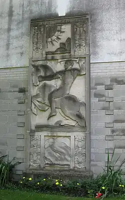 - Animal Panels - six limestone panels depicting various animals, designed by Jacobine Jones