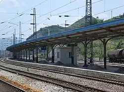 Construction of the Guizhou–Guangxi railway began under the Nationalist government of China during World War II to provide the country's wartime capital, Chongqing, with an outlet to the sea.[2] In April 1939, with the Japanese invasion threatening Jiangxi and Hunan Provinces, the Chinese government chose to abandon construction of the Hunan–Guizhou railway and shifted personnel southwestward to the Guizhou–Guangxi corridor.[2] From September 1939 to February 1941, 161 km (100 mi) of track was laid in the plains from Liuzhou to Jinchengjiang (Hechi).[2] The 237 km (147 mi) Jinchengjiang to Dushan section was completed by May 1943, and gave rail access to the airfield at Dushan.[2] Dushan served as a base for the Flying Tigers and reception point for the allied air shipments over "the hump" from India. The Qiangui railway was used to redistribute supplies to southern Guizhou and Guangxi.[2] Pilots shot down and rescued in rural Guangxi and Guizhou were sent to stations along route and transported by rail back to Dushan.[2]
