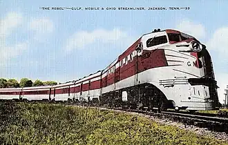 In 1935, the Gulf, Mobile and Northern Railroad (GM&N), a predecessor of the GM&O, introduced the Rebel between New Orleans, Louisiana and Jackson, Tennessee. It was the first lightweight streamliner in the Southern United States. In the fashion of mid-1930s streamliners each consist was built as a cohesive set with streamlined power car, although the cars were not articulated. Even before its merger with the Mobile and Ohio Railroad in September 1940 the GM&N had begun assembling equipment for a new Rebel.[1]